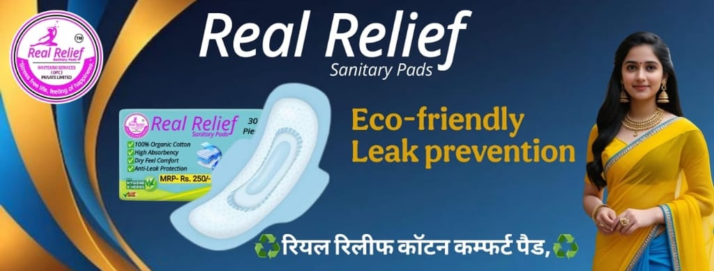 इनवाइट करो सर्विसेज ओपीसी प्राइवेट लिमिटेड, Real Relief ब्रांड के तहत उच्च गुणवत्ता वाले और किफायती सैनिटरी पैड्स का निर्माण और वितरण करती है। हमारा उद्देश्य महिलाओं को सुरक्षित, आरामदायक और भरोसेमंद पीरियड केयर उपलब्ध कराना है। हम समाज में महिला स्वास्थ्य और स्वच्छता को लेकर जागरूकता बढ़ाने के साथ-साथ बेहतर जीवनशैली की दिशा में काम कर रहे हैं।