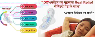 जब महिलाएँ खुद को देखभाल और सम्मान की भावना से भरी हुई महसूस करती हैं, तब वे अपनी असली क्षमता को पहचानने में सक्षम होती हैं। Real Relief का लक्ष्य महिलाओं को ऐसे उत्पाद प्रदान करना है जो आराम, स्वच्छता और सुरक्षा का भरोसा दिलाते हैं। हम मानते हैं कि जब महिलाएँ अपने स्वास्थ्य को प्राथमिकता देती हैं और आत्म-विश्वास के साथ आगे बढ़ती हैं, तो वे जीवन के विभिन्न पहलुओं में सक्षम होती हैं।